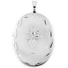 Sterling Silver .015 CT Natural Diamond Oval Cross Locket