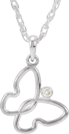 Sterling Silver .02 CT Natural Diamond Butterfly 18" Necklace