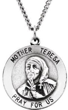 Sterling Silver 18 mm Mother Teresa Round Pendant Medal 18" Necklace