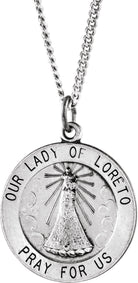 Sterling Silver 18 mm Our Lady of Loreto Medal 18" Necklace