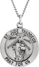 Sterling Silver 18 mm Round St. Jude Thaddeus Medal 18" Necklace
