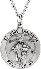 Sterling Silver 22 mm Round St. Jude Thaddeus Medal 24" Necklace