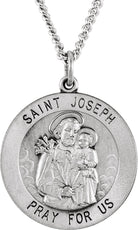 Sterling Silver 25 mm Round St. Joseph Medal 24" Necklace