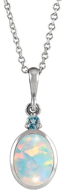 Sterling Silver 6x4 mm Lab-Grown White Opal & Natural London Blue Topaz 16-18" Necklace