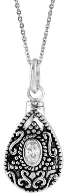 - Description: April Tear Shaped Birthstone Ash Holder Necklace