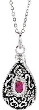 Sterling Silver 6x4 mm Oval July Birthstone Ash Holder 18" Necklace