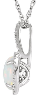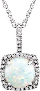 • Description: Lab-Grown White Opal And .015 CTW Natural Diamond Birthstone Necklace