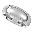 Sterling Silver 7 mm Milgrain Stepped-Edge Comfort-Fit Half Round Band Size 7.5