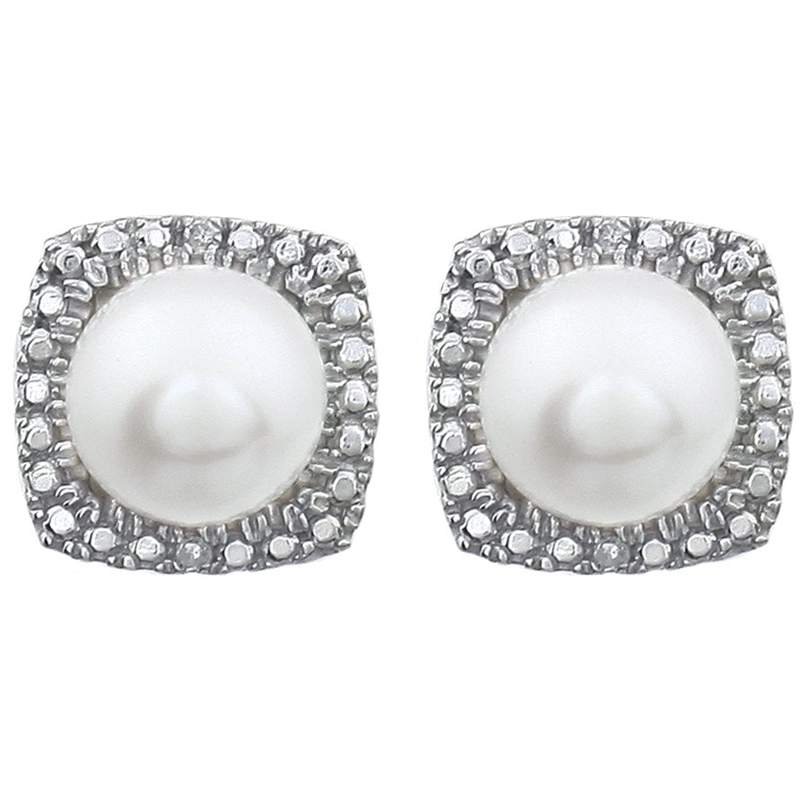 Sterling Silver Cultured White Freshwater Pearl & .015 CTW Natural Diamond Earrings
