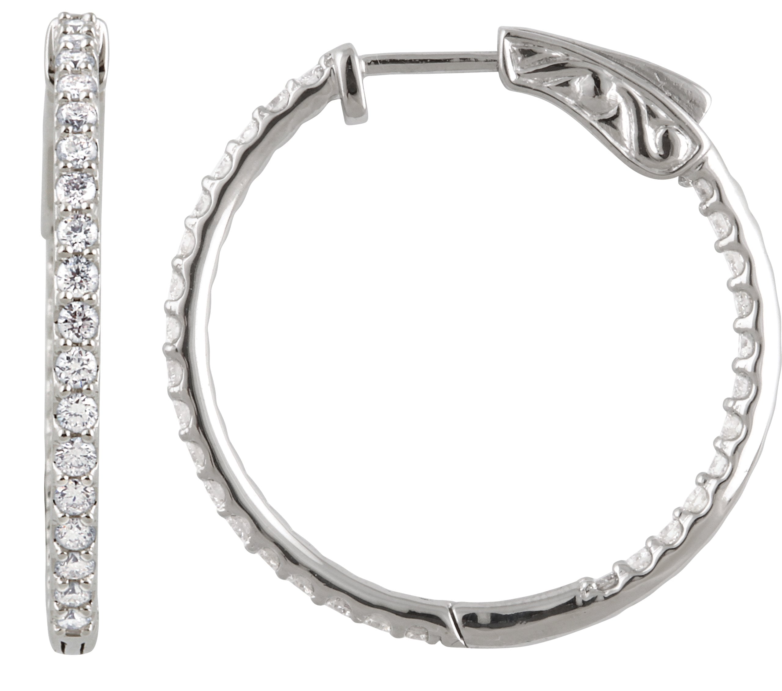 - Description: Imitation White Cubic Zirconia Inside-Outside Hinged Hoop Earrings