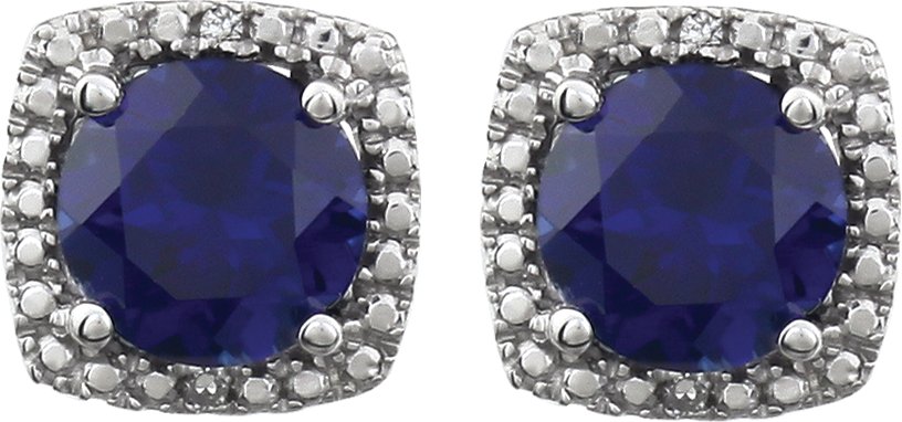 Sterling Silver Lab-Grown Blue Sapphire & .015 CTW Natural Diamond Earrings