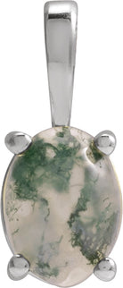 - Description: Natural Moss Agate 4-Prong Cabochon Basket Pendant