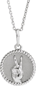 Sterling Silver Peace Sign Language 16-18" Necklace