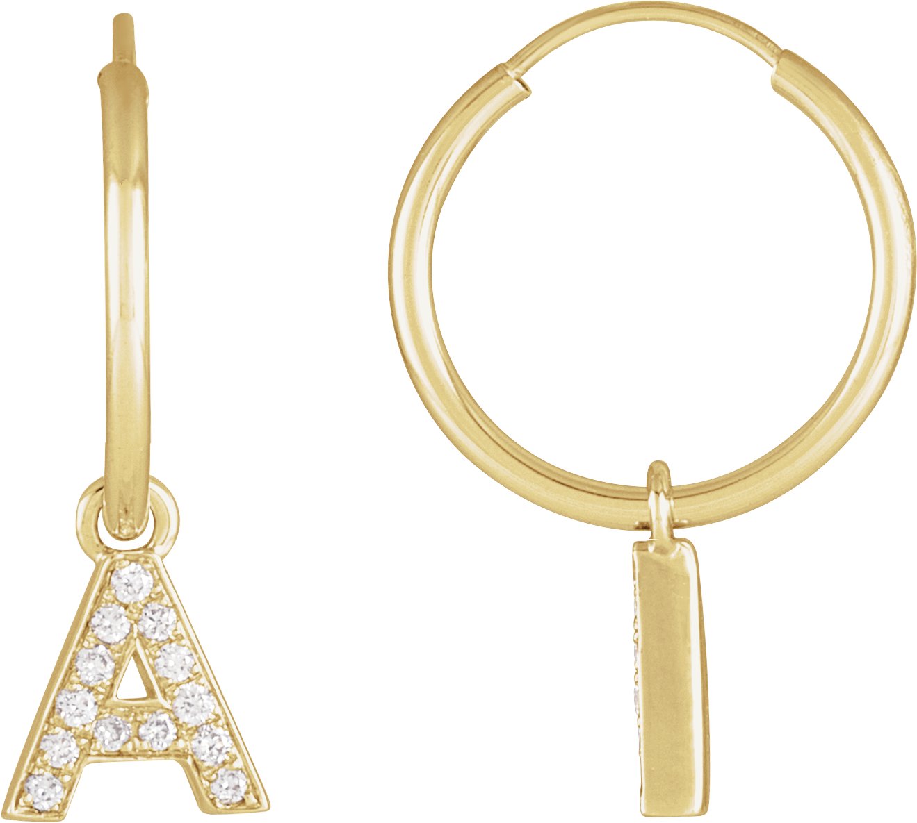 14K Yellow .05 CTW Natural Diamond Single Initial A Hoop Earring