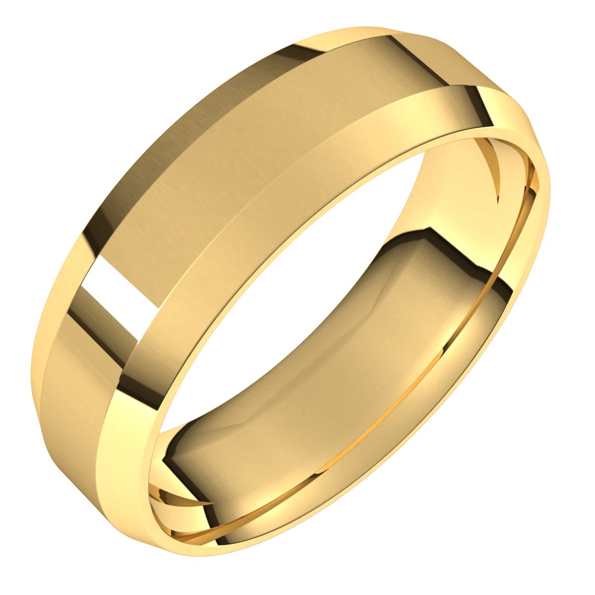 14K Yellow 6 mm Lightweight Beveled-Edge Comfort-Fit Flat Band Size 7