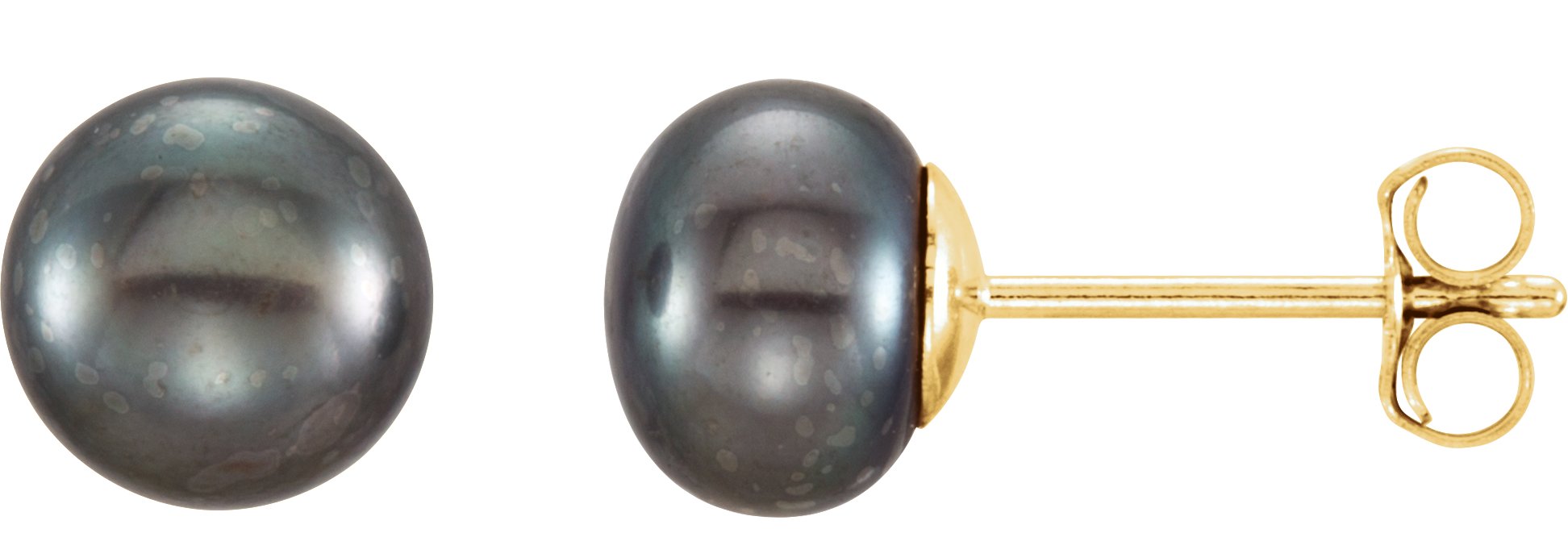 14K Yellow 8-9 mm Cultured Black Freshwater Button Pearl Earrings