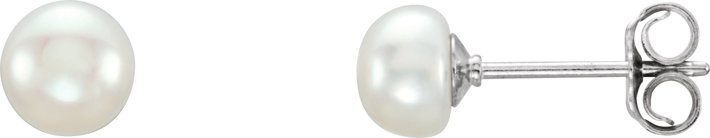 Sterling Silver 5-6 mm Cultured White Freshwater Button Pearl Earrings