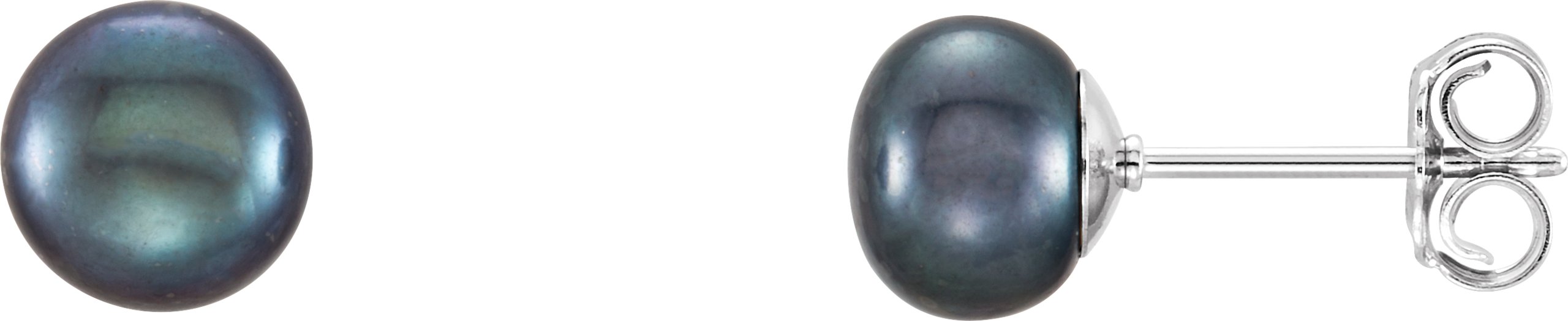Sterling Silver 6-7 mm Cultured Black Freshwater Button Pearl Earrings