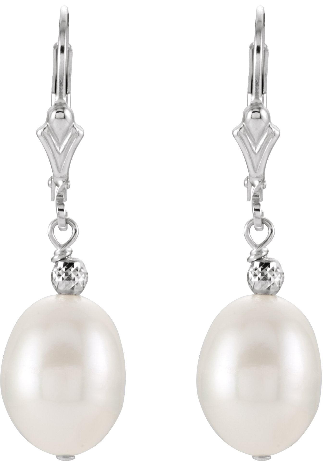 Sterling Silver 9-9.5 mm Cultured White Freshwater Pearl Earrings