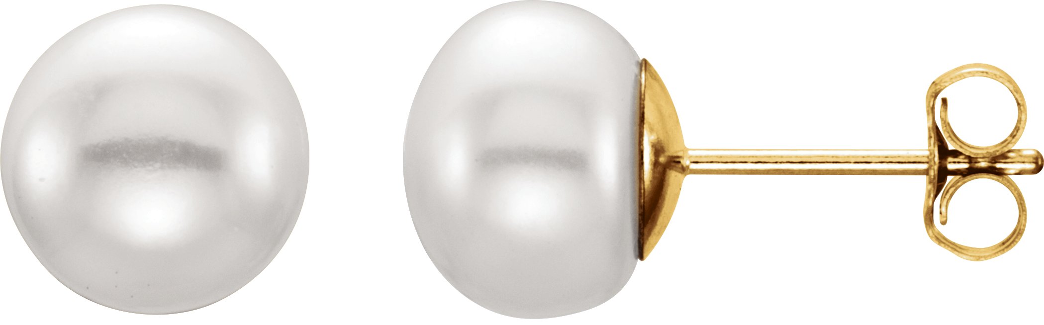 14K Yellow 7-8 mm Cultured White Freshwater Button Pearl Earrings