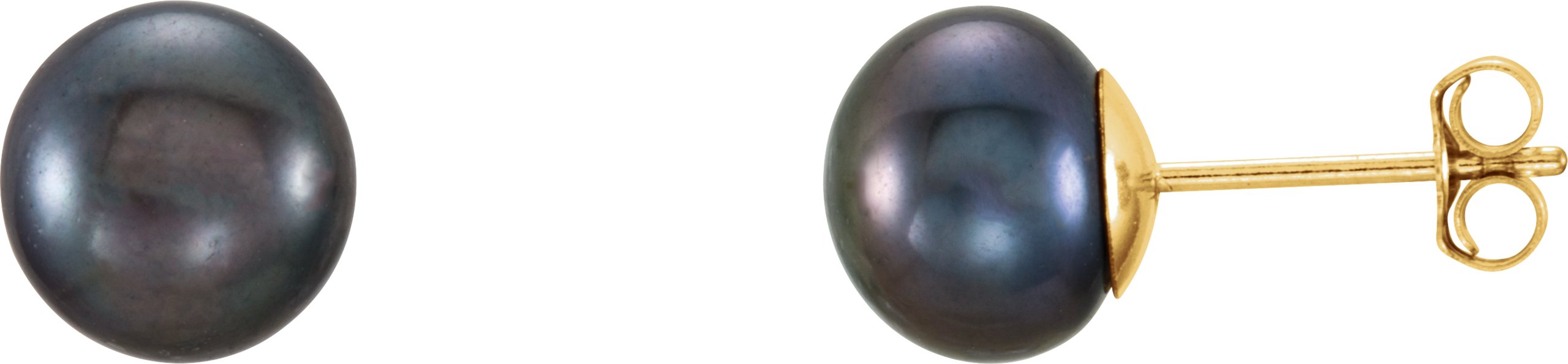 14K Yellow 7-8 mm Cultured Black Freshwater Button Pearl Earrings