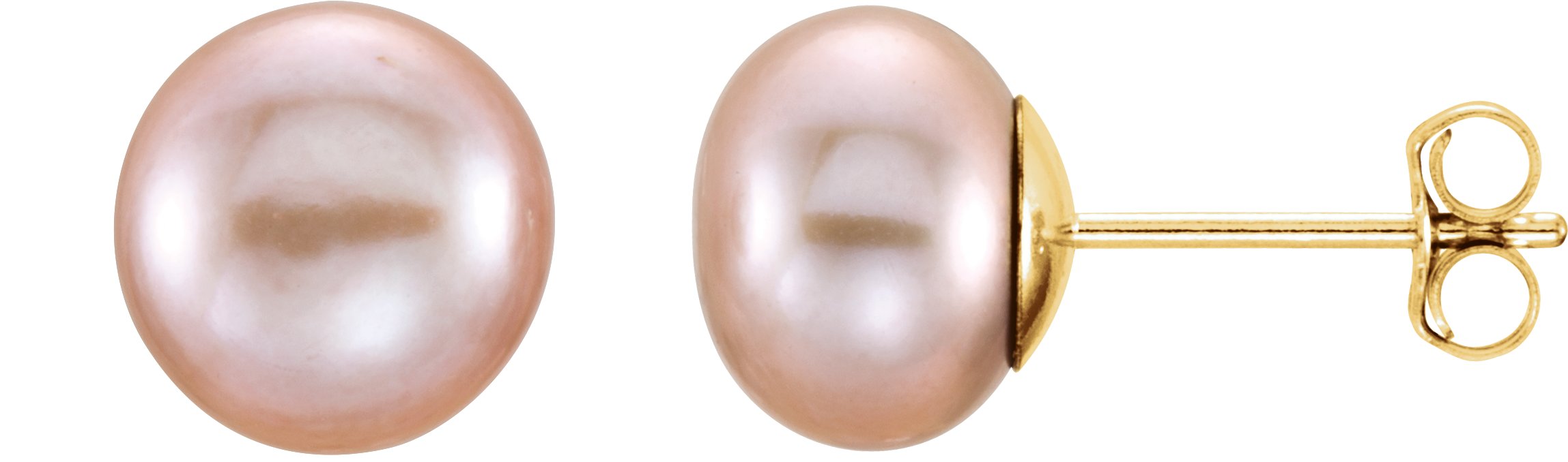 14K Yellow 7-8 mm Cultured Pink Freshwater Pearl Earrings