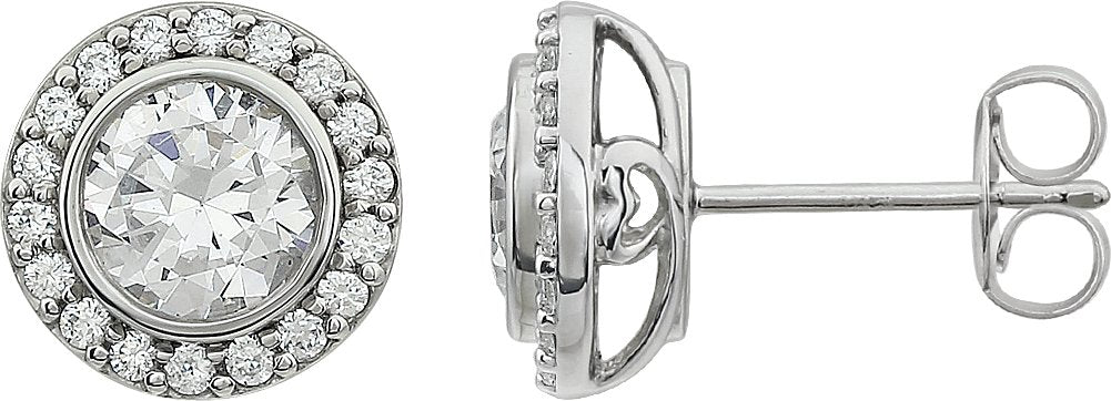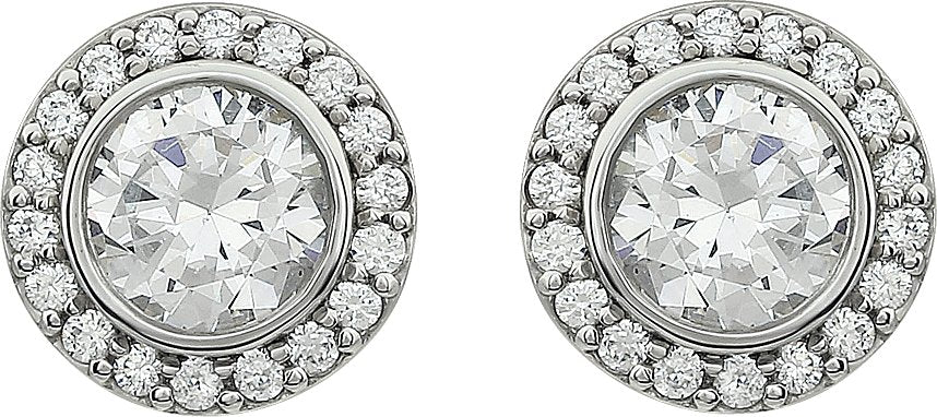 Sterling Silver Imitation White Cubic Zirconia Halo-Style Earrings