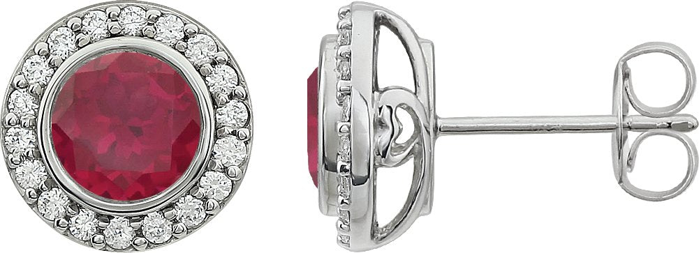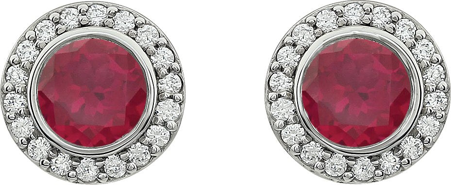 Sterling Silver Imitation Red Cubic Zirconia Halo-Style Earrings