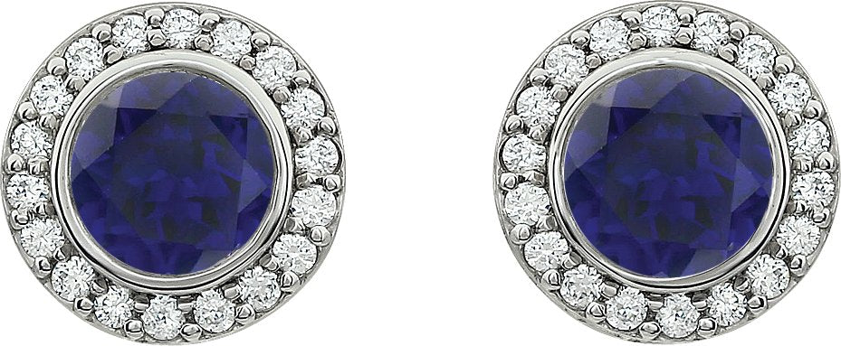 14K White Lab-Grown Blue Sapphire Youth Earrings