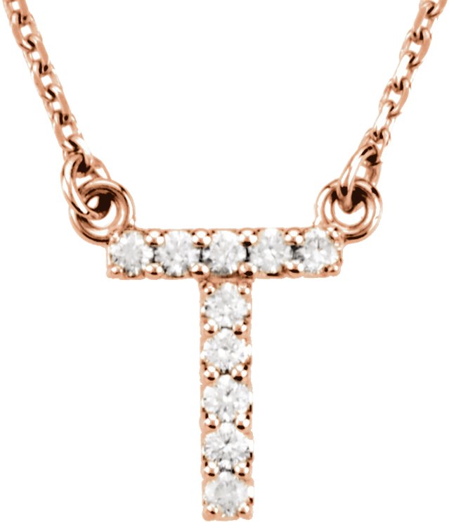 14K Rose 1/10 CTW Natural Diamond Initial T 16" Necklace
