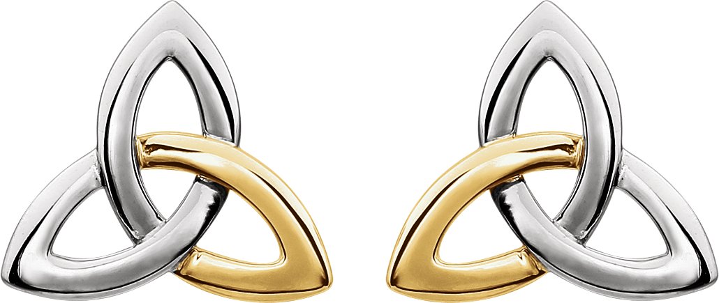 14K White/Yellow Celtic-Inspired Trinity Earrings
