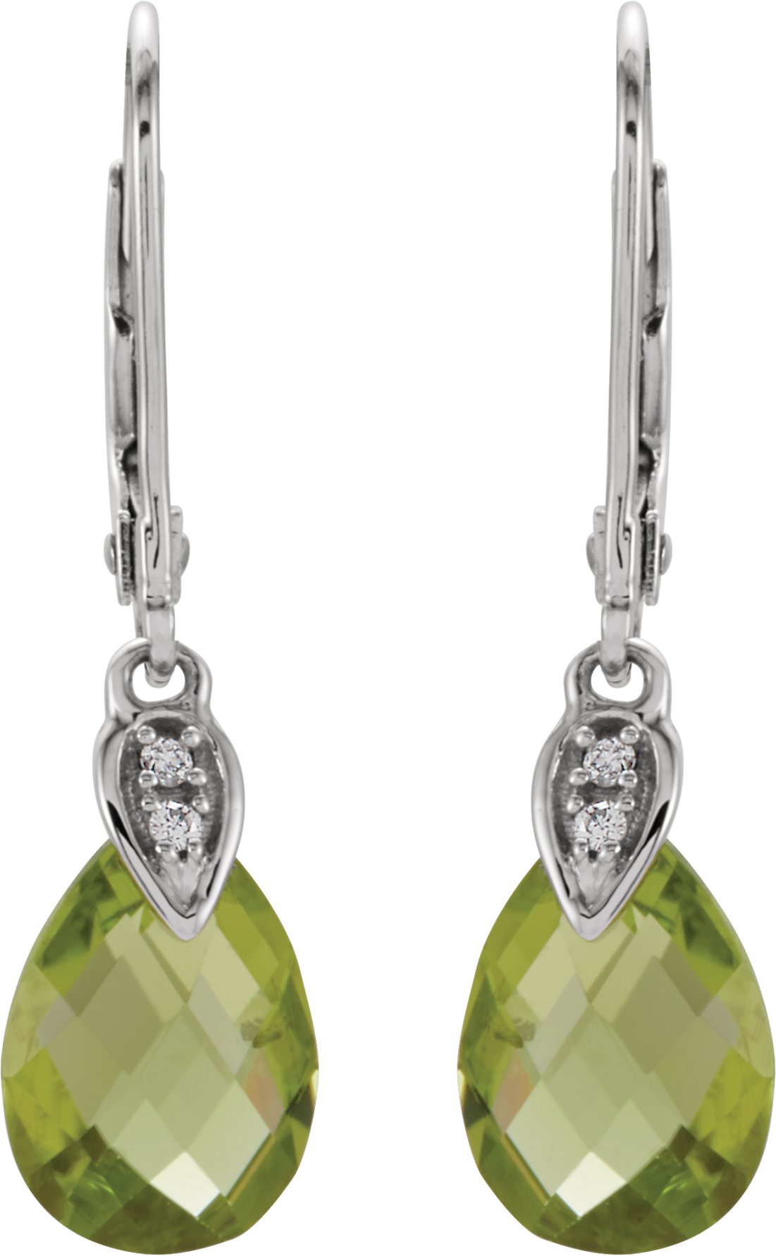 14K White Natural Peridot & .025 CTW Natural Diamond Earrings