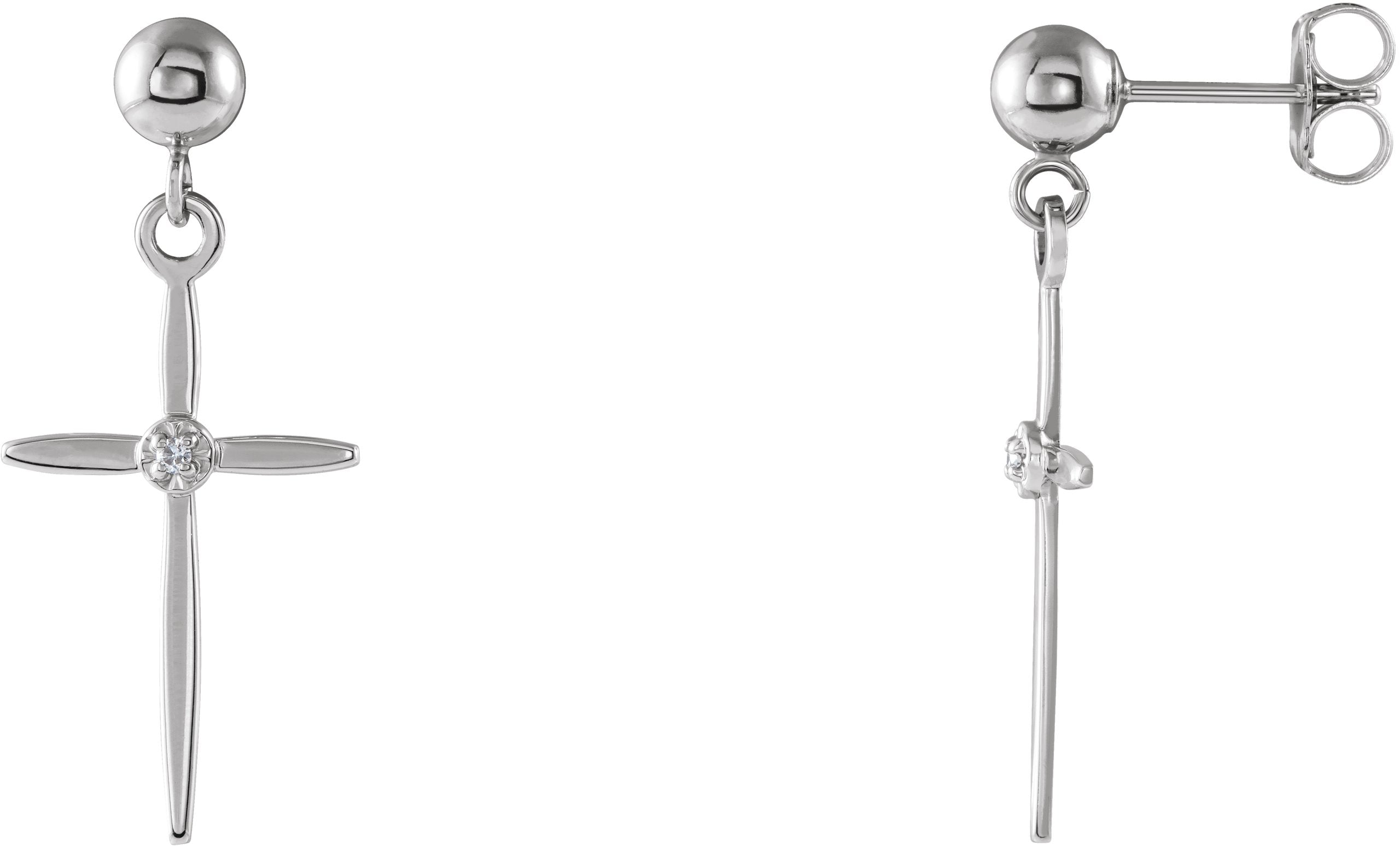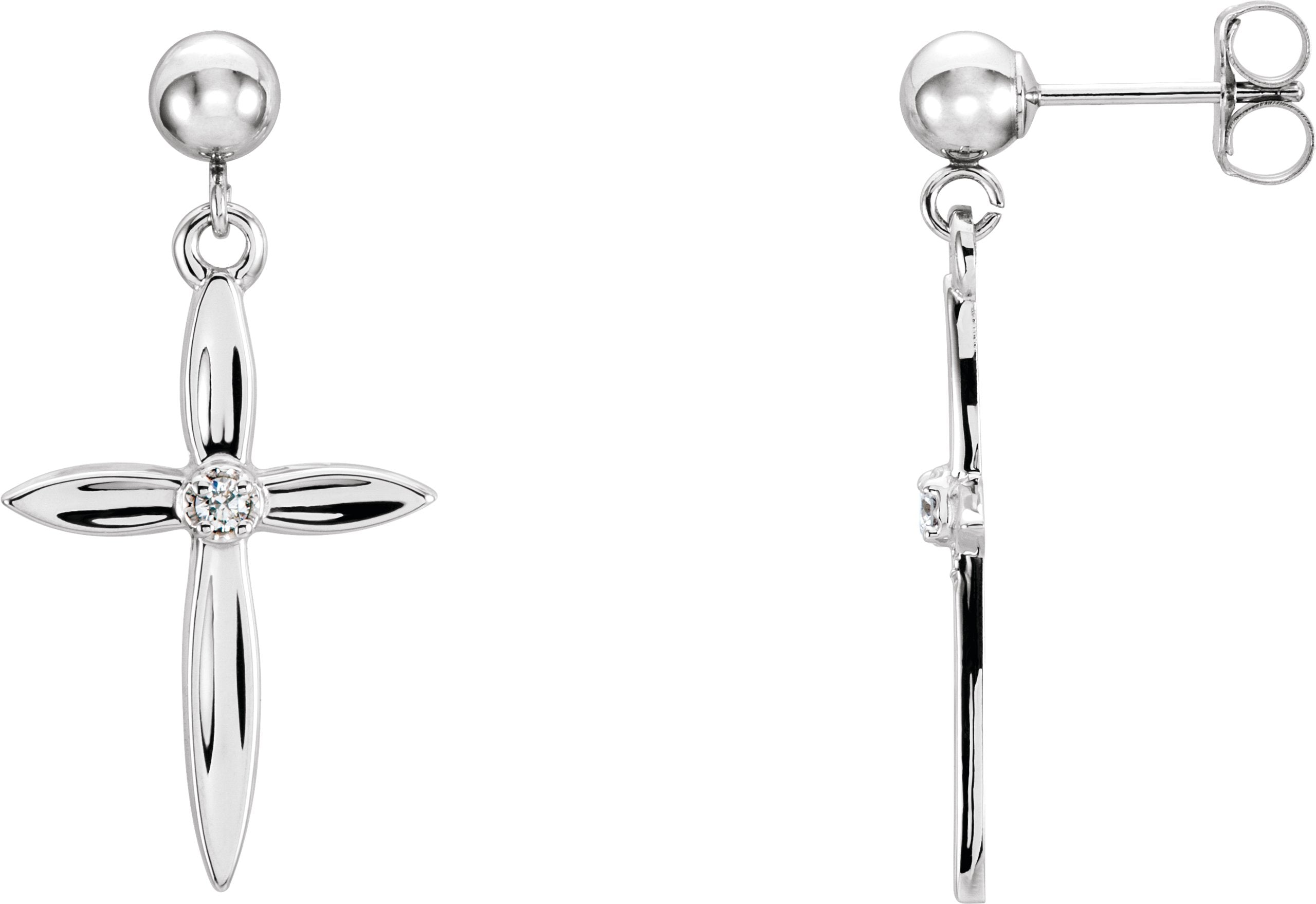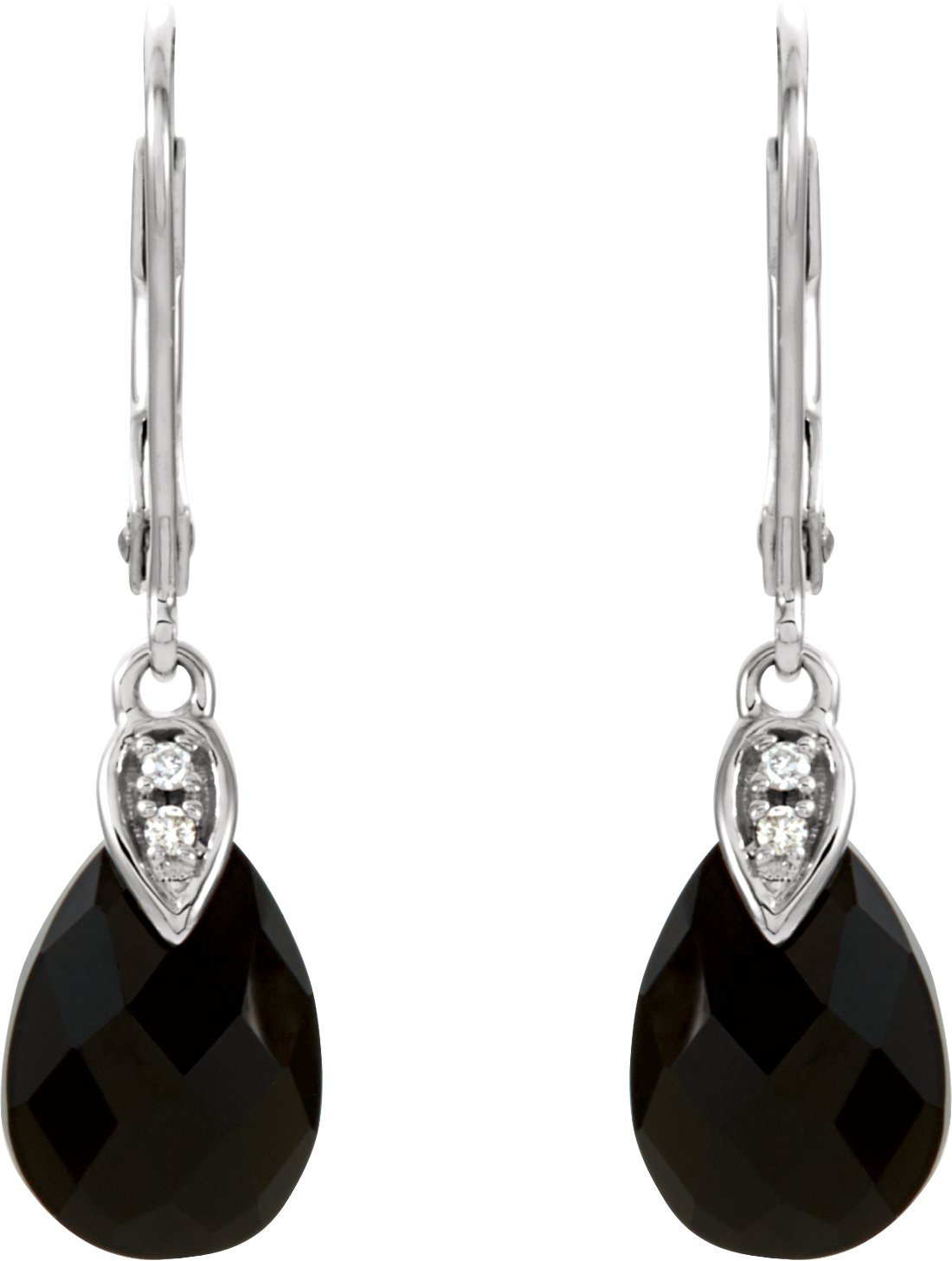 14K White Natural Briolette Onyx & .025 CTW Natural Diamond Earrings