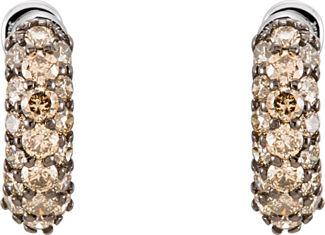 14K White 5/8 CTW Natural Brown Diamond 11 mm Hoop Earrings