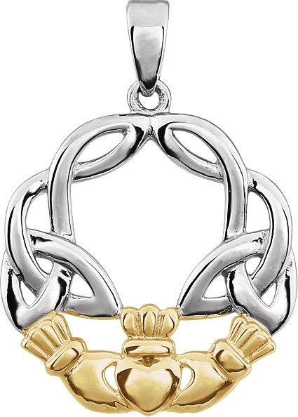 14K White/Yellow .004 CT Natural Diamond Celtic-Inspired Pendant