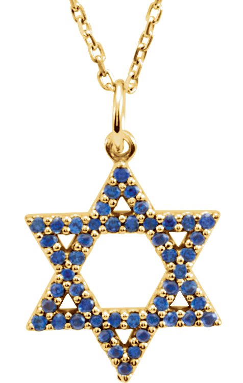 14K Yellow Natural Blue Sapphire Star of David 16" Necklace