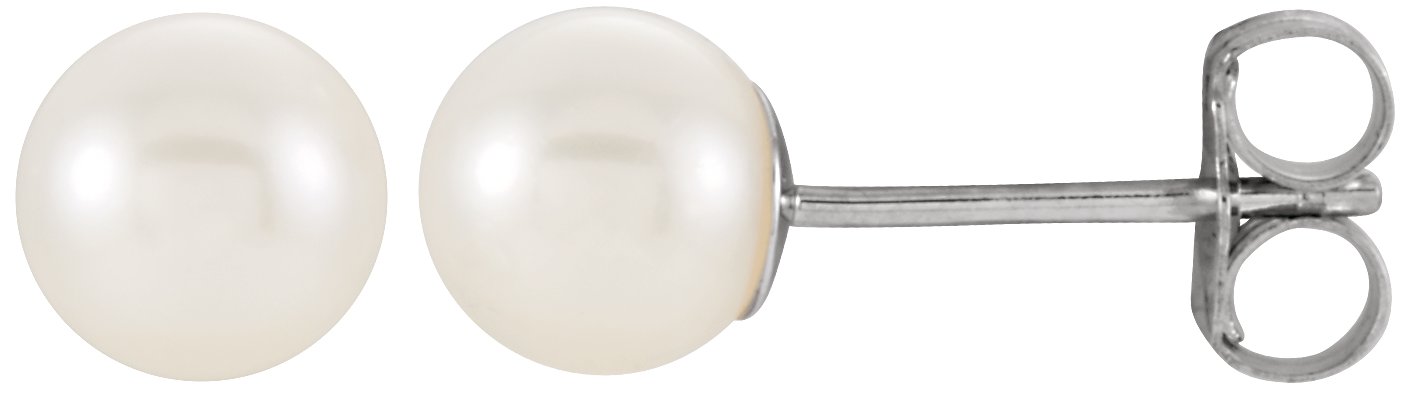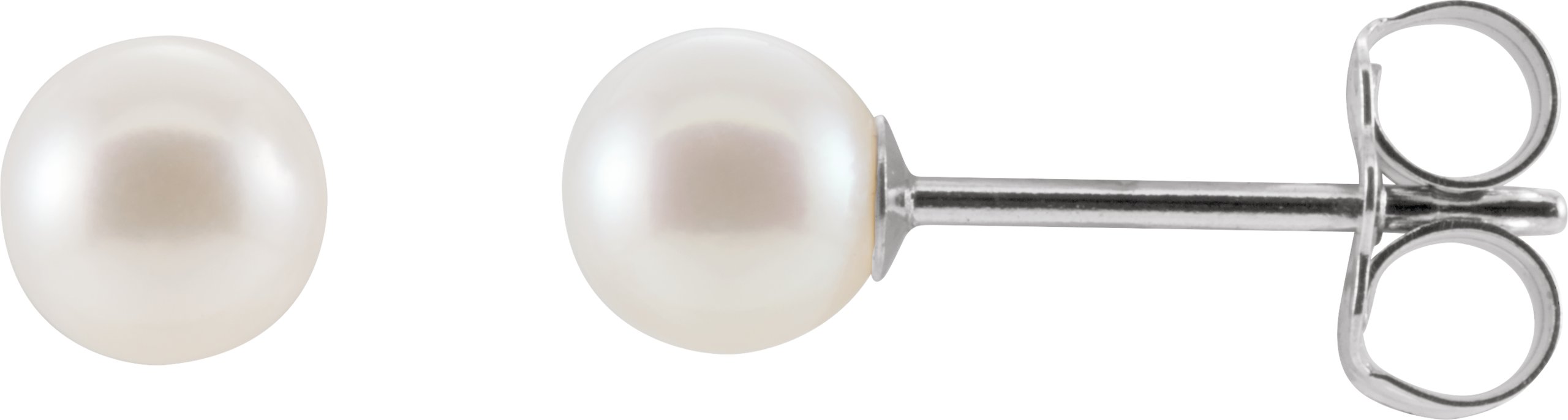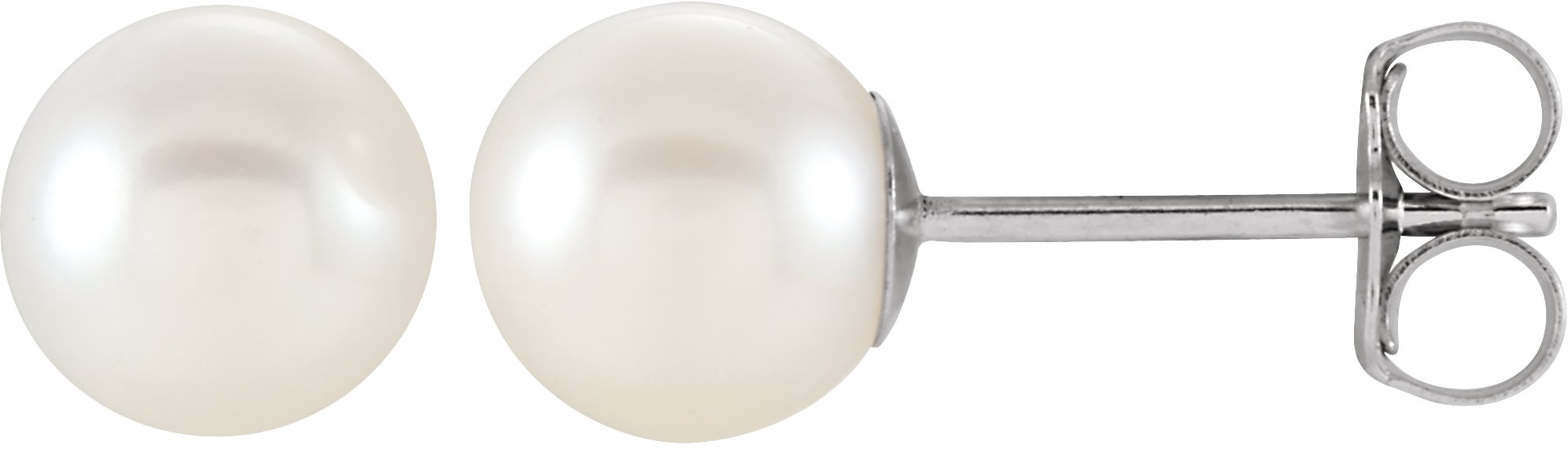 14K White Cultured White Freshwater Pearl & 1/8 CTW Natural Diamond Earrings