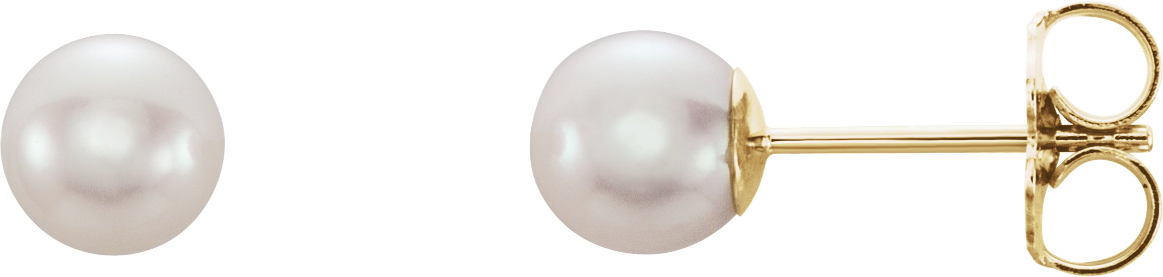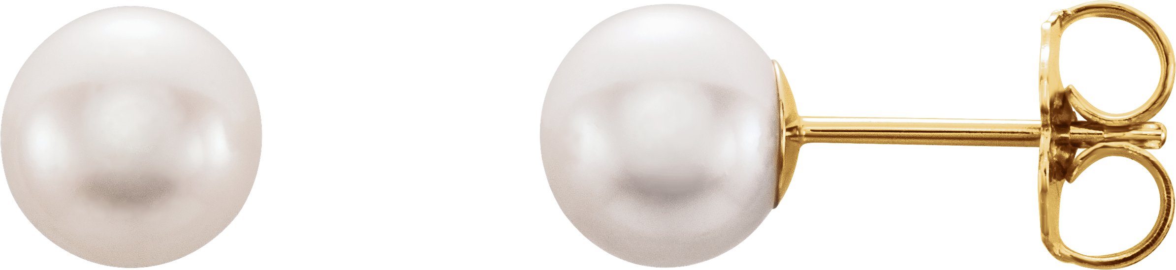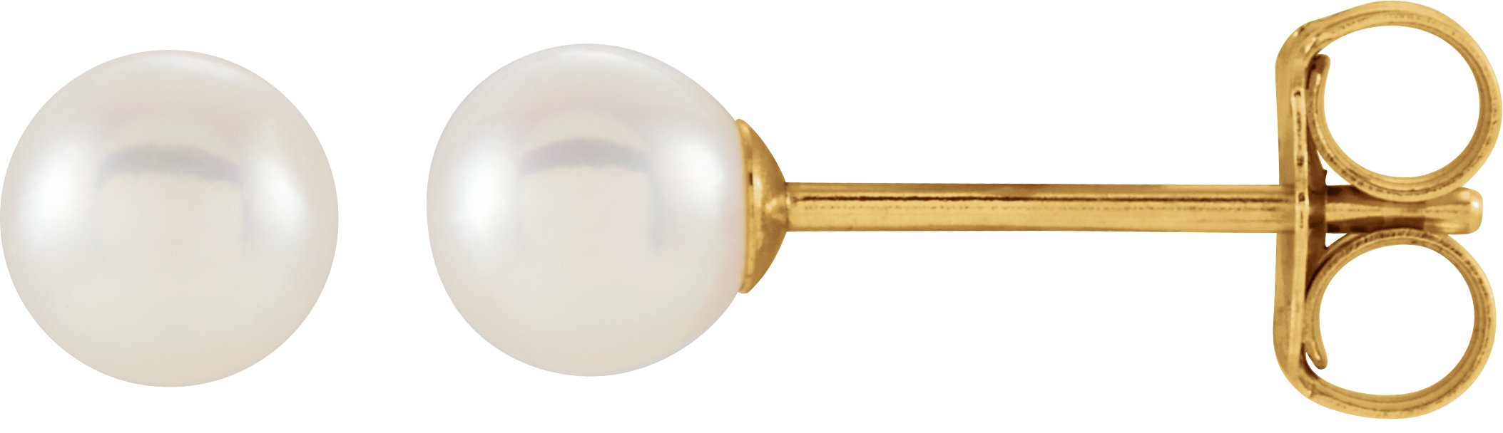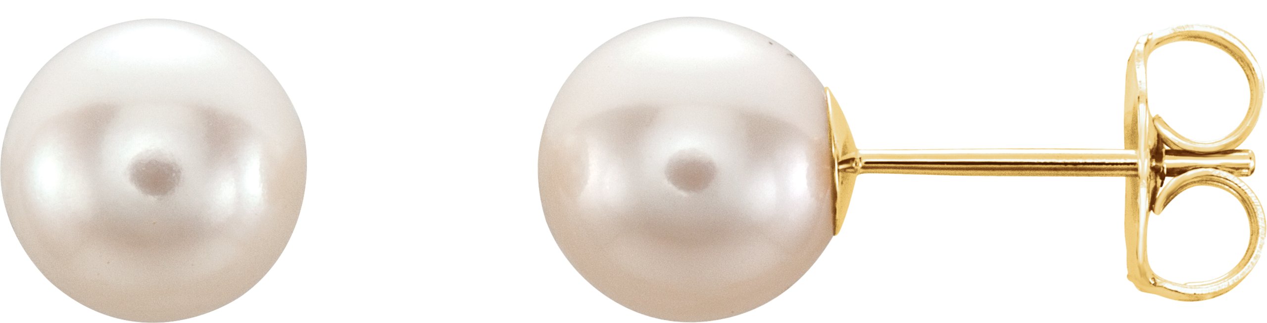 14K Yellow Cultured White Freshwater Pearl Earrings