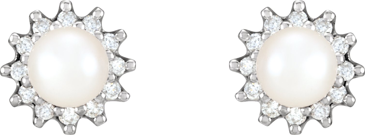 14K White Cultured White Akoya Pearl & 1/3 CTW Natural Diamond Earrings