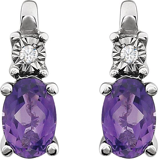 14K White Natural Amethyst & .02 CTW Natural Diamond Earrings