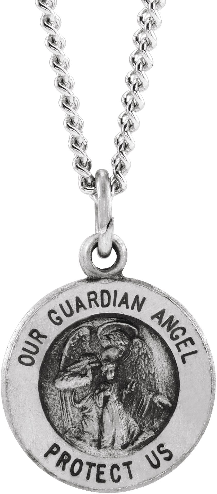 Sterling Silver 18 mm Guardian Angel Medal 18" Necklace