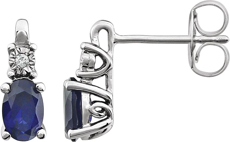 14K White Lab-Grown Blue Sapphire & .02 CTW Natural Diamond Earrings