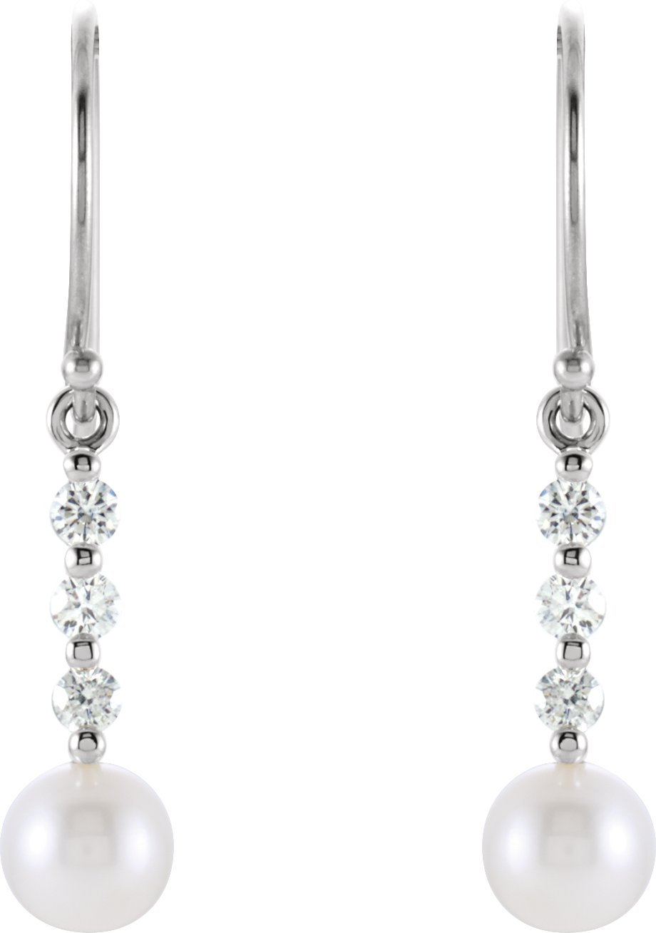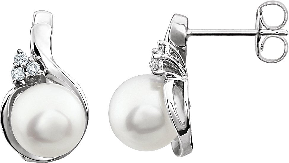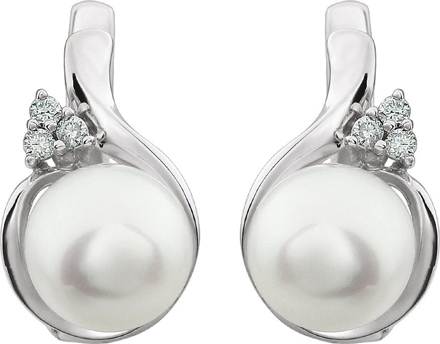 14K White Cultured White Freshwater Pearl & .08 CTW Natural Diamond Earrings