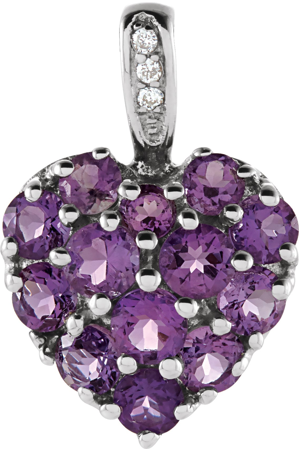 14K White Natural Amethyst & .01 CTW Natural Diamond Heart Pendant
