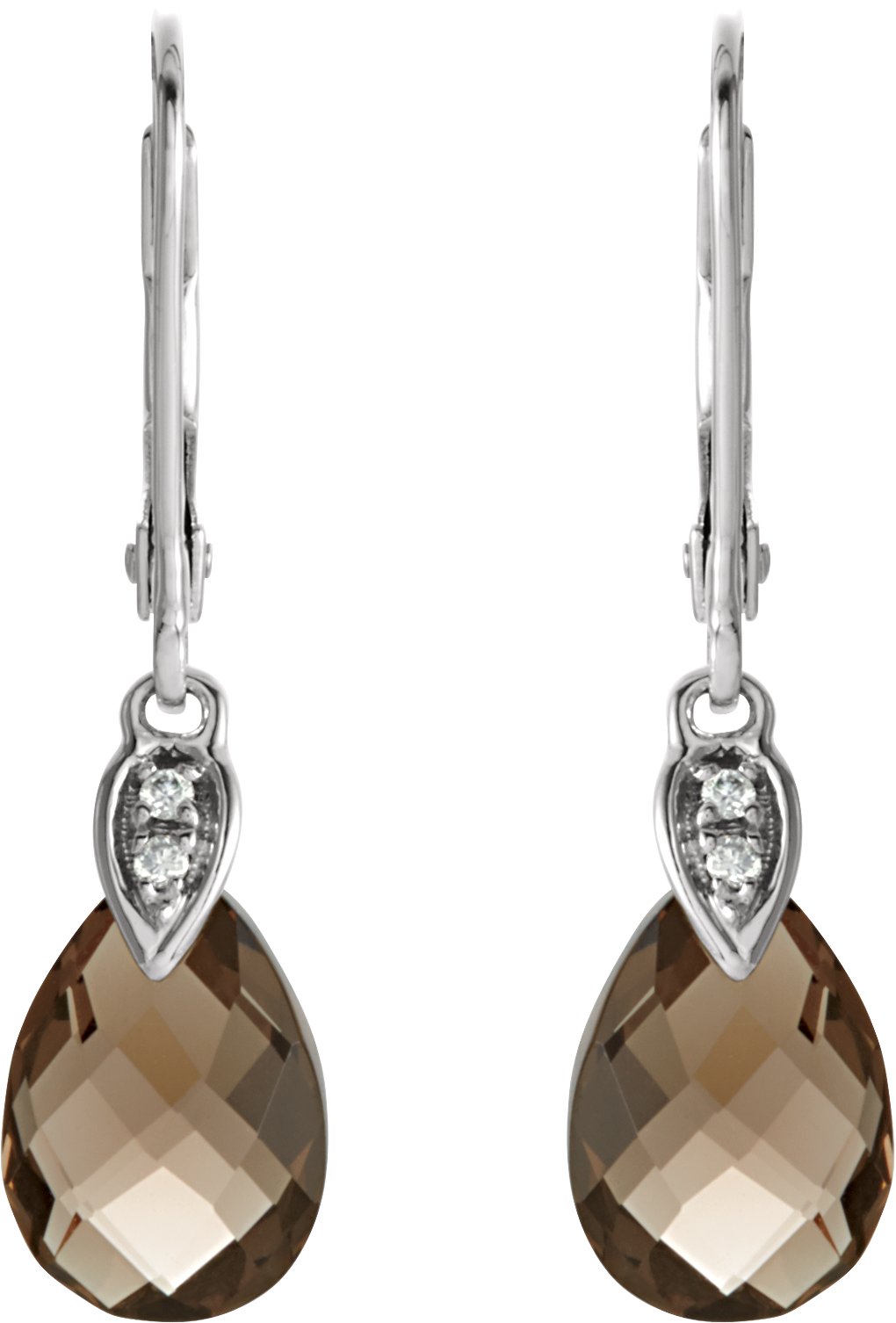 14K White Natural Briolette Smoky Quartz & .025 CTW Natural Diamond Earrings