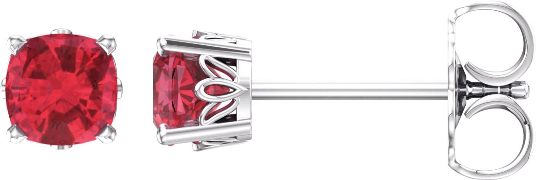 14K White 4x4 mm Cushion Lab-Grown Ruby Earrings