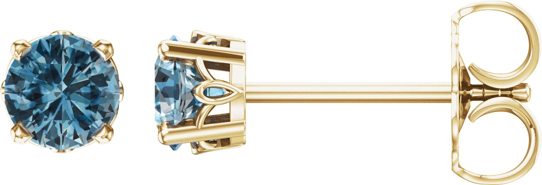 14K White Natural Swiss Blue Topaz 4-Prong Scroll Setting® Stud Earrings