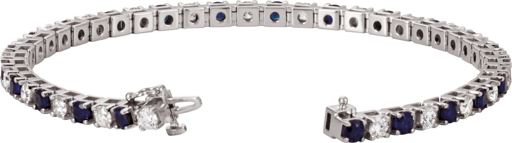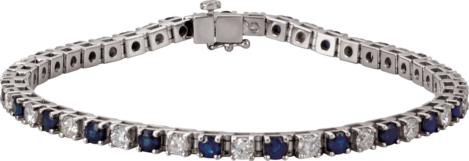 14K White Natural Blue Sapphire & 2 1/3 CTW Natural Diamond Line 7" Bracelet