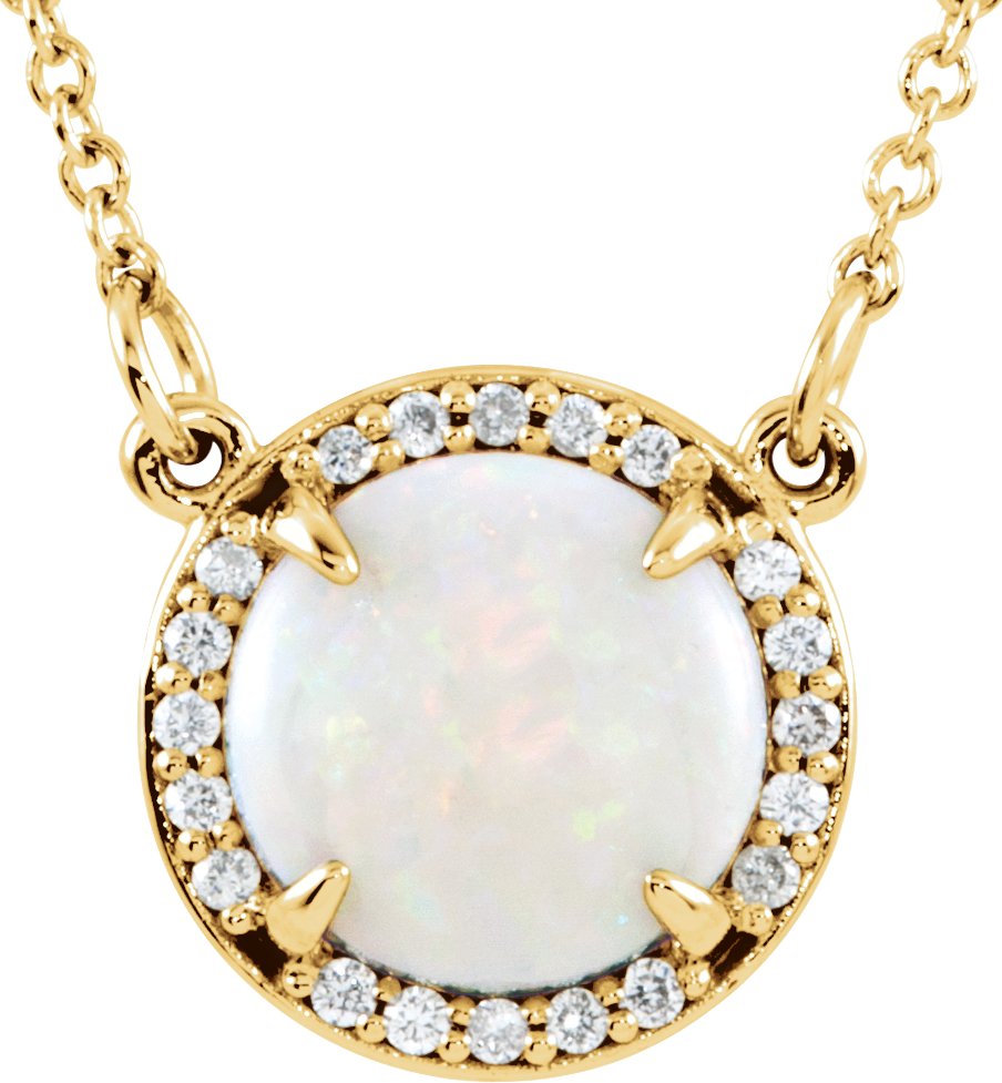 14K Yellow Natural White Opal & .05 CTW Natural Diamond 16" Necklace