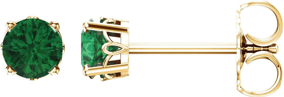 14K Yellow Lab-Grown Emerald 4-Prong Scroll Setting® Stud Earrings